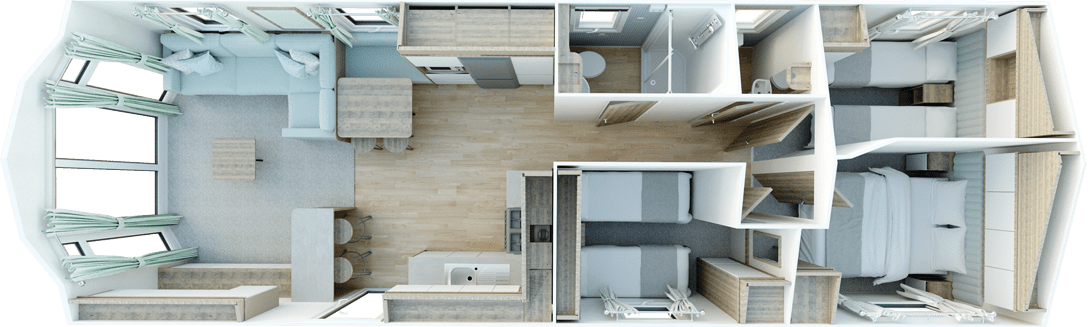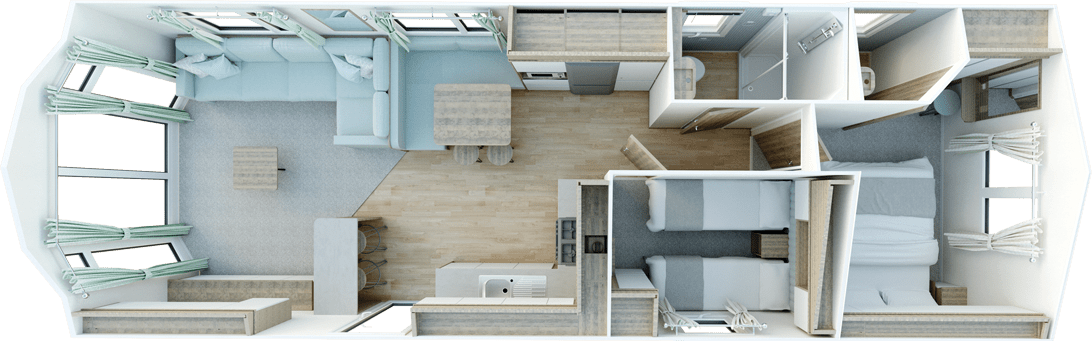 The Brookwood has been carefully designed to maximise space, comfort and natural light. With a modern interior layout and high-quality finishes throughout, this holiday home is perfect for relaxing breaks and extended stays.