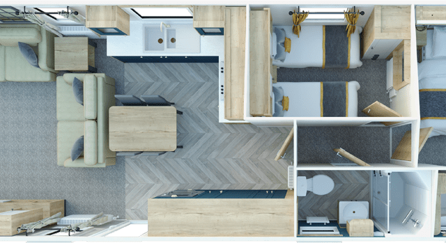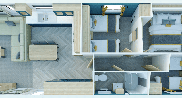The Gainsborough has been carefully designed to maximise space, comfort and natural light. With a modern interior layout and high-quality finishes throughout, this holiday home is perfect for relaxing breaks and extended stays, offering owners a premium holiday home experience.